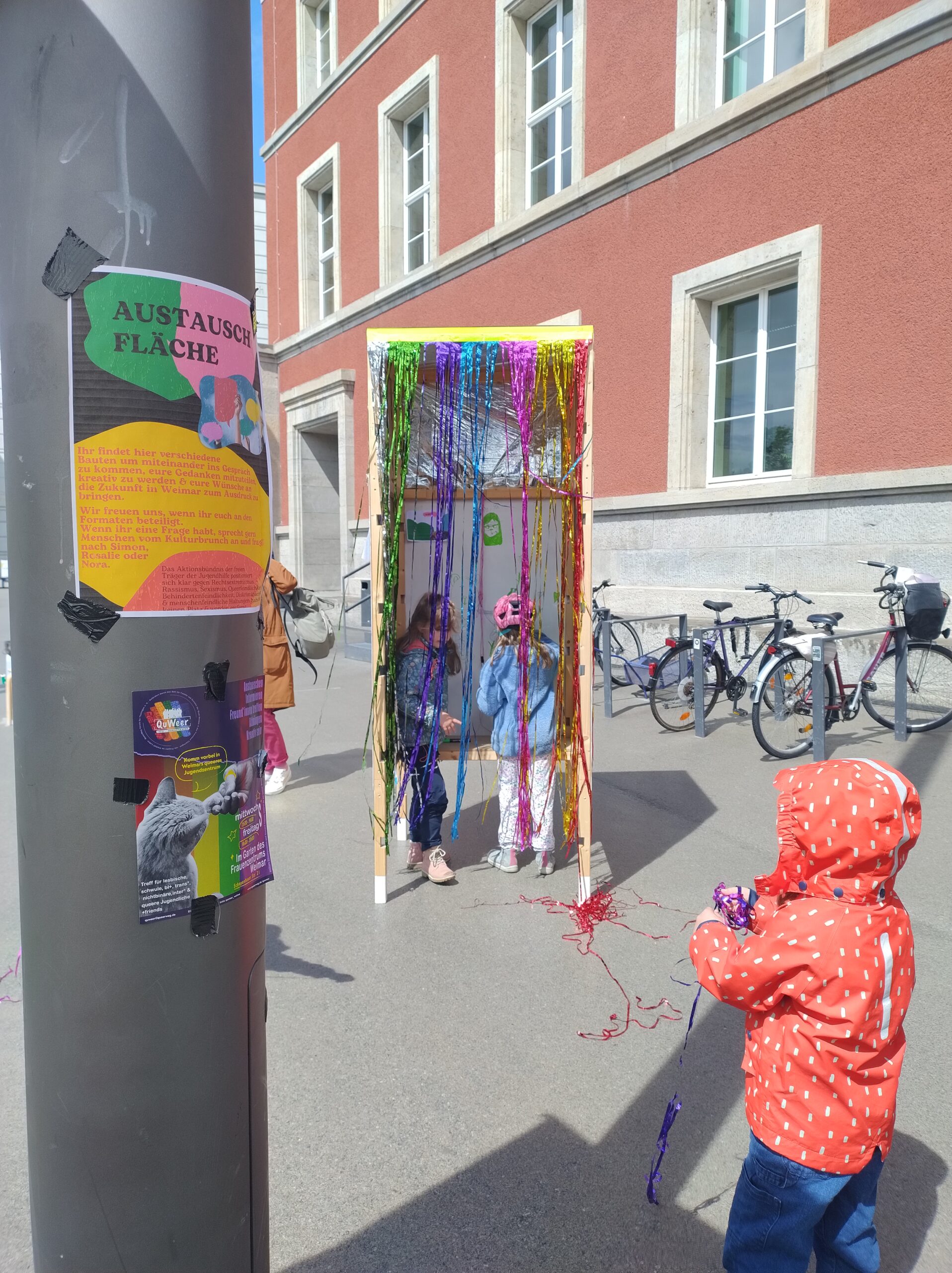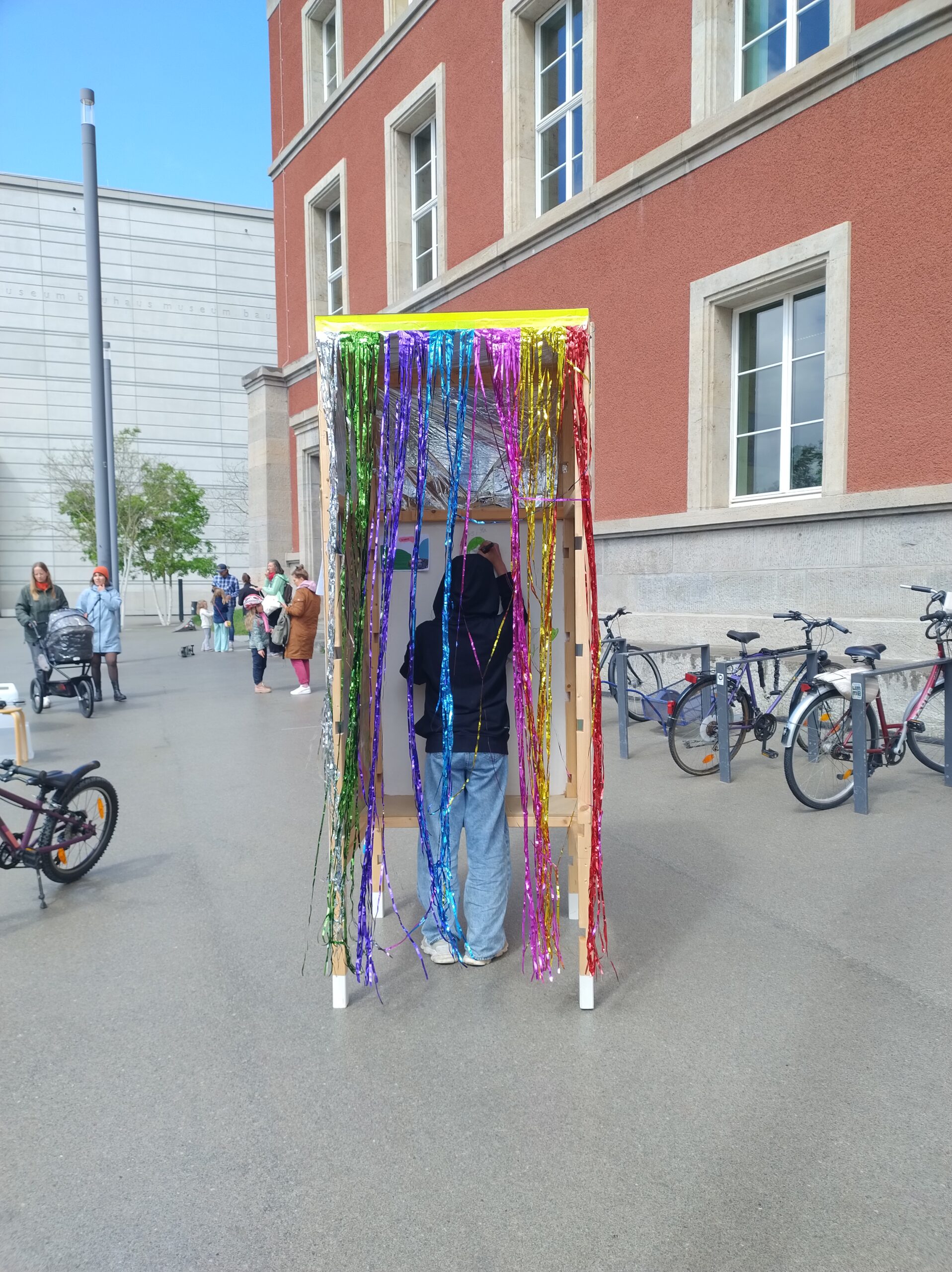 Im Rahmen eines Kultur-Brunches präsentieren sich die Kultureinrichtungen jedes Stadtteils bei einem gemeinsam organisierten Straßenfest. Unser Beitrag beschäftigt sich dieses Jahr mit Ideenaustausch und Dialog. So entstanden verschiedene Installationen, die auf unterschiedliche Weise einen nachbarschaftlichen Austausch während des Festes initiieren.