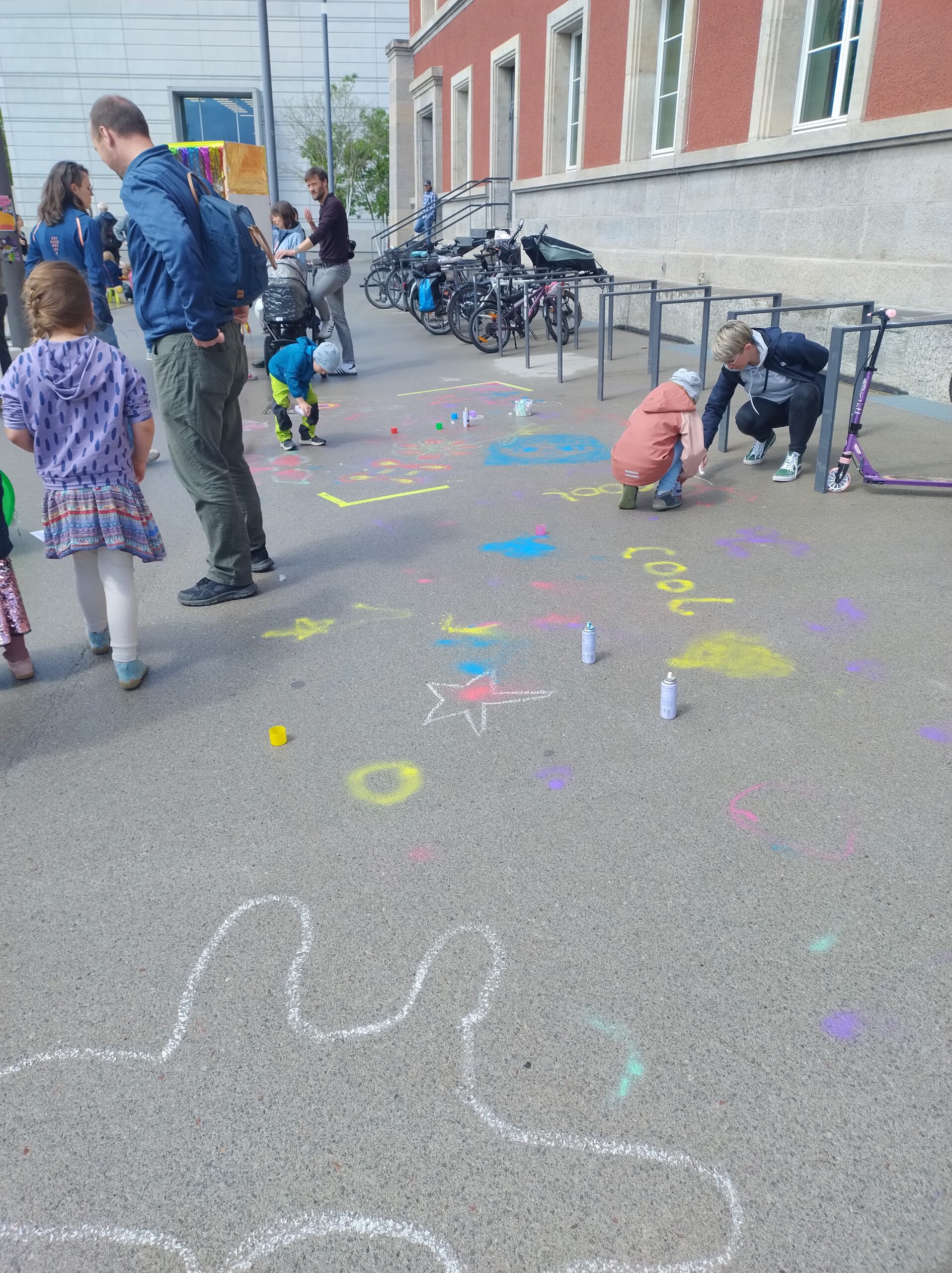 Basteltisch – hier gibt es leere Plakate, Selbstmach-Sticker und (Sprüh-)Kreide als verschiedene Möglichkeiten, seine Wünsche und Meinungen sichtbar zu machen.